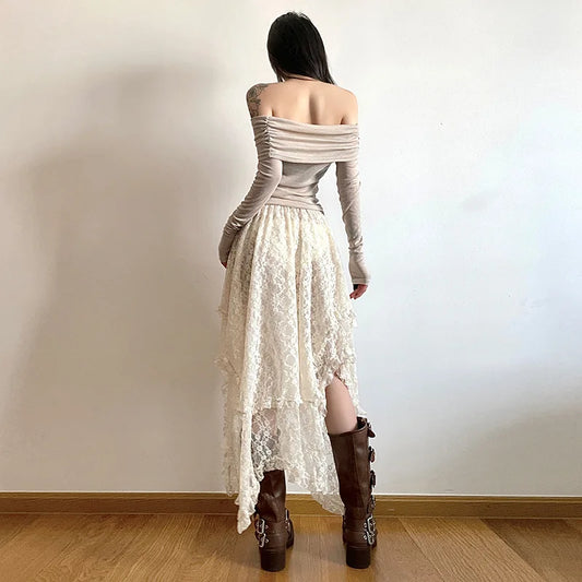 Lace Asymmetry A-Line Skirt