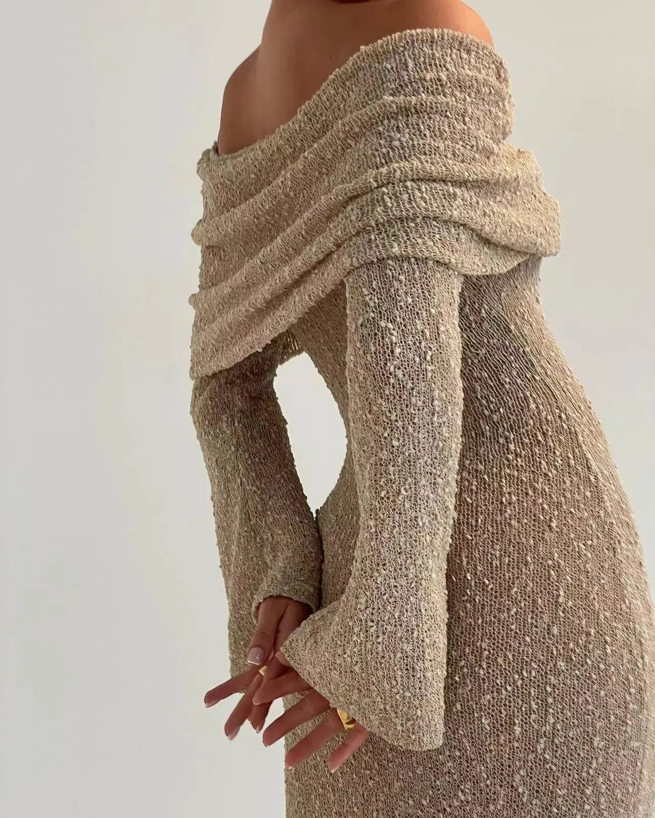 Slash Neck Knit Maxi Dress